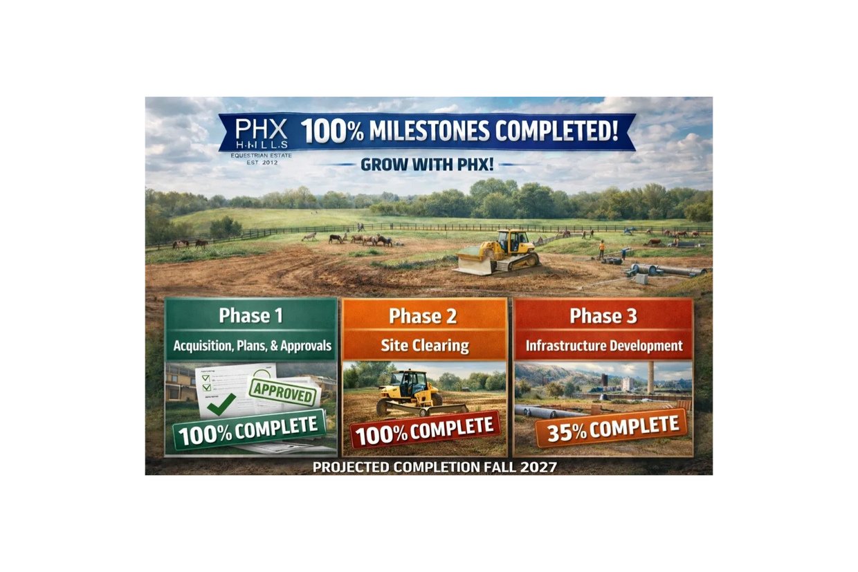 At PHX Hills Equestrian Estate, we are excited to share the progress of the estate. Thank you all for your support.